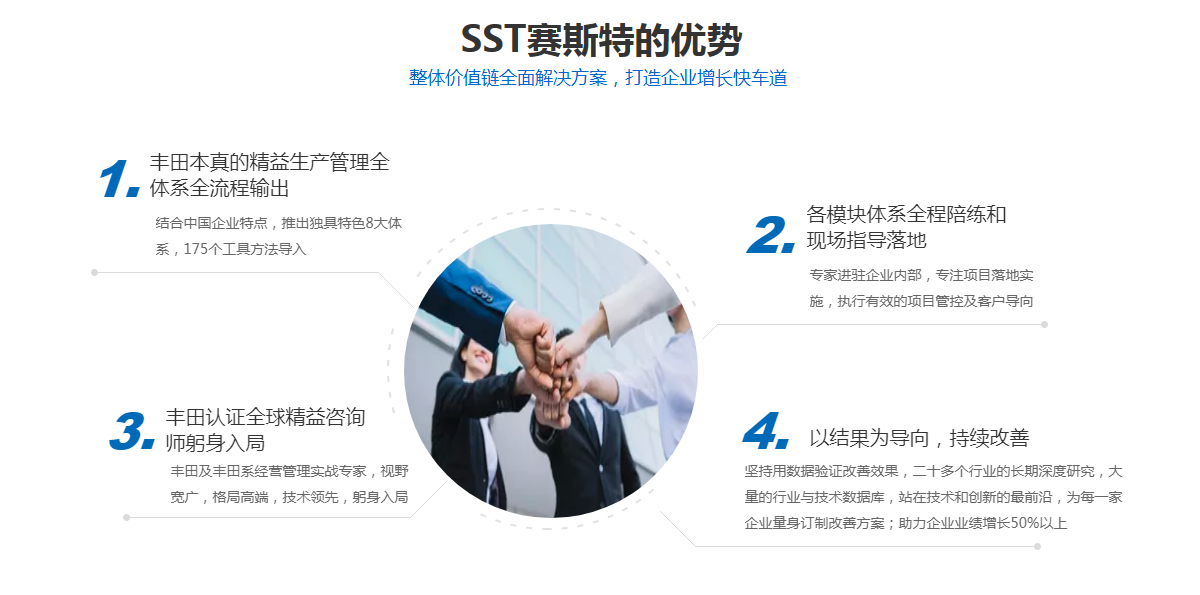 賽斯特集團(tuán)(SST)是豐田為背景的一家致力于企業(yè)管理咨詢、培訓(xùn)服務(wù)為主的國際化管理咨詢機(jī)構(gòu),依托于精益發(fā)源地豐田公司為背景的專家團(tuán)隊,專業(yè)從事精益生產(chǎn)培訓(xùn)和咨詢服務(wù)的管理咨詢機(jī)構(gòu),中國本土唯一一家融合日本豐田,北京現(xiàn)代,韓國三星等專家為一體的咨詢機(jī)構(gòu)。旗下?lián)碛校禾旖蛸愃固仄髽I(yè)管理咨詢公司,天津眾益天成管理咨詢公司,北京冠群精益管理咨詢公司,天津精益智能咨詢有限公司等四家分支機(jī)構(gòu)。 |